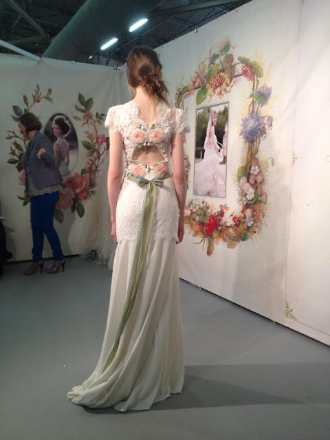 | The front of a gorgeous, elegant Claire Pettibone gown |