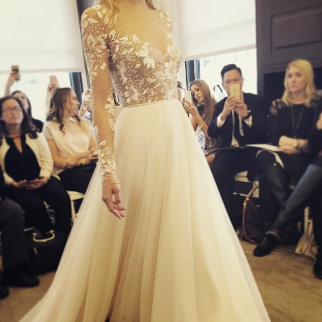 We're so excited to share more incredible gowns from New York Bridal Market! The delicate lace, the use of color, the exquisite beading, the dramatic plunging backs (and some necklines!), the luxurious fabrics, the romantic styling, the flattering silhouettes, the intricate detailing - we love it all! Without further preamble, here are the goods!